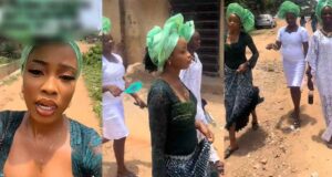 Aso-Ebi ladies trek to wedding venue after their ride leaves them...