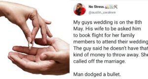 Lady reportedly calls off her wedding after fiancé refused to pay...