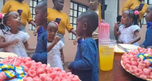 Birthday girl w@rns boy to keep his hands off her cake,...