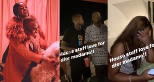 Aloma DMW and Davido’s house staff sing for Chioma on her...