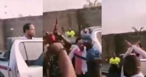 Policemen fire gunshot into the air as clergyman, Odumeje Indaboski throws...