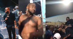 Davido’s bodyguard throws overzealous fans off stage during his performance in...