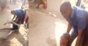 Deadbeat Father Publicly Batters His Wife And Child In Ibadan (Video)