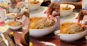 Moment lady struggles to eat fish with long artificial nails (Video)