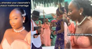 Stunning bride ignores heavy rain, dances with pride and joy during...