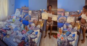 Expectant mom shows off massive collection of baby essentials as she...