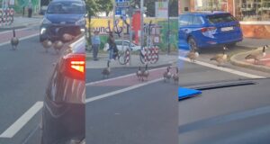 Nigerian Woman Amazed As Drivers Wait For Geese Crossing Road In...