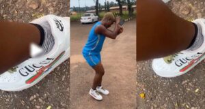 Lady shows off the ‘expensive’ Gucci-Nike sneakers from her Odogwu talking...