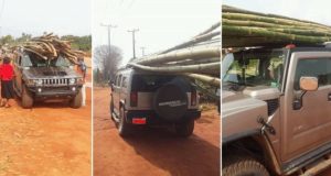 Hehe… Hummer Jeep Spotted Being Used To Transport Bamboo Sticks.