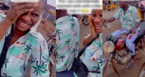 Hilarious moment lady wore matching clothes with her bike man (Video)