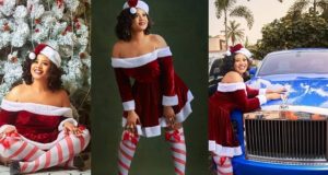 E-Money’s Wife, Juliet Okonkwo Poses With Her Rolls Royce As She...