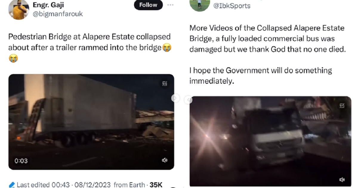Pedestrian Bridge At Alapere Estate In Lagos Collapses, Motorists Advised to...
