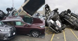 Hundreds of new cars destroyed by tornadoes at a Toyota dealership...