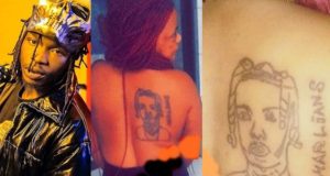 Young Lady Tattoos Naira Marley’s Head On Her Back