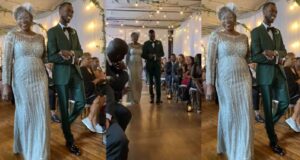 Adorable moment female Nigerian envoy walked her son down the aisle...
