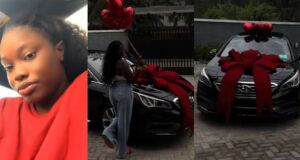 Hair vendor celebrates buying her first car, worth ₦20 million (WATCH)