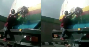 NNPC fuel tanker seen leaking seriously on the road in Lagos...