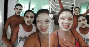 Cute! Omotola Jalade Ekeinde And Her Kids Get Facial Beauty Treatment...
