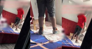 Lady fümes as technician stepped on her bed with his shoes...