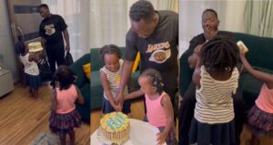Heartwarming moment little girls welcomed their Daddy with a birthday surprise...