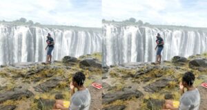 Tourist pictured near edge of Victoria Falls in Zimbabwe falls over...