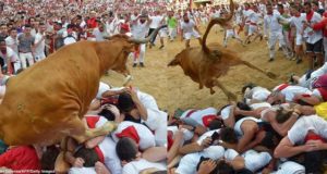 Shocking moment bull jumps over participants at San Fermin festival (Photos)