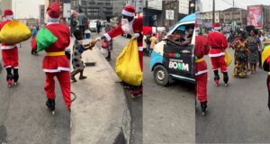 Lovely moment Santa Claus visits Lagos streets to gift passers-by (VIDEO)