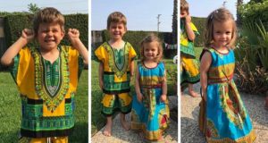 Photos: American Woman Acknowledges Nigerian Outfits She Got For Her Children