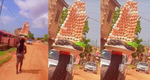 Ghanaian egg vendor amaze customers as she skillfully arranged eggs while...