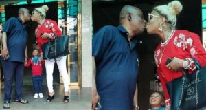 Tonto Dikeh kisses her dad on the mouth. (photos)