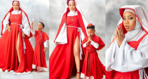 Toyin Lawani releases stylish Christmas card photos with her son Lordmaine