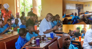 Vice President Yemi Osinbajo having lunch with students of a public...