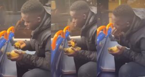 Abroad-based man dǝvours ‘fufu and okra soup’ in transit, sparks reactions...