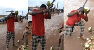 Nigerian Man Displays Incredible Talent By Cutting Coconut On His Head...