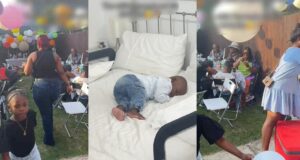 “The husband immediately comport” – Hilarious moment a Nigerian bride stopped...