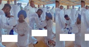 Moment mother of newborn baby speaks in tongues while dedicating her...