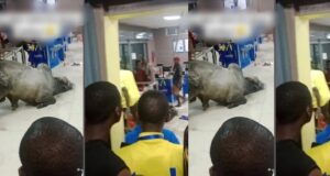 Netizens Reacts As Video Of A Cow Unexpectedly Invading A Supermarket...