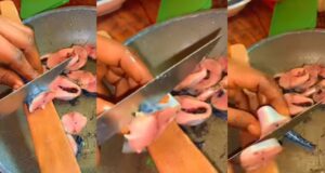 Video Of A Nigerian Woman Cutting Her Fish Into Tiny Portions...
