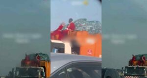 A motorist is stúnned after spotting men in Santa Claus costumes...