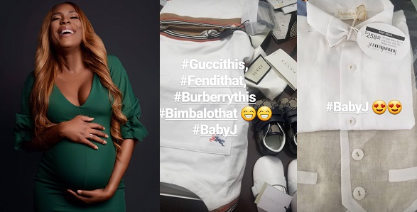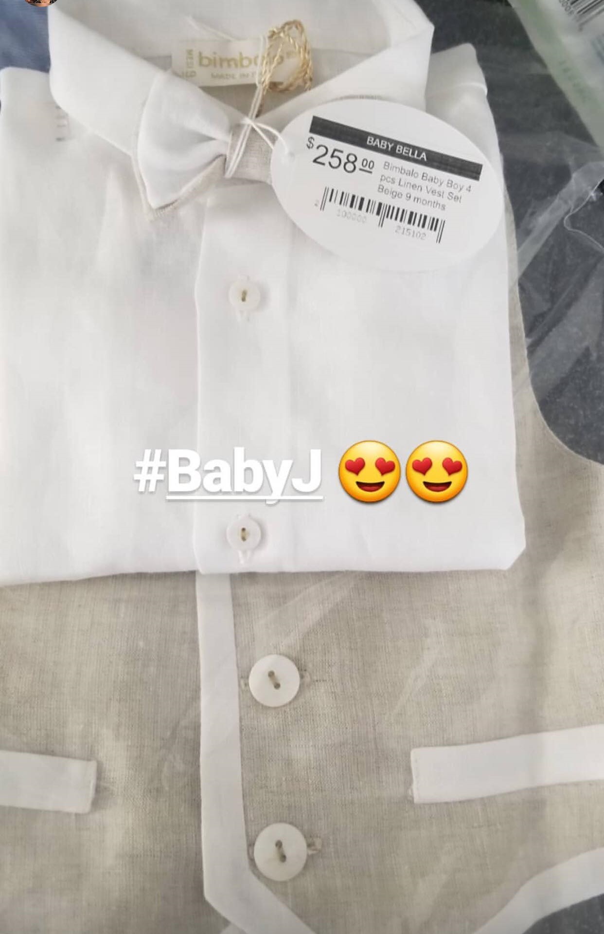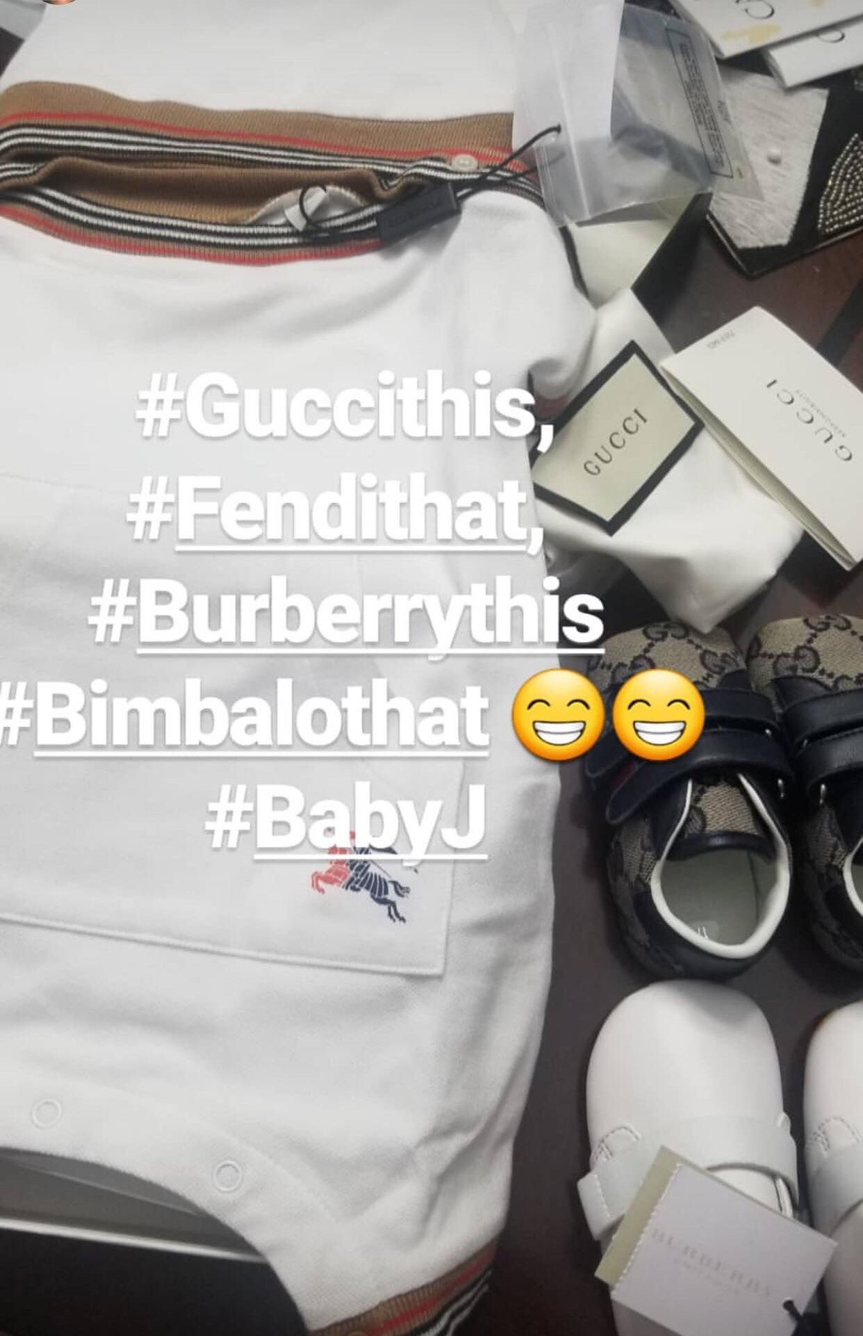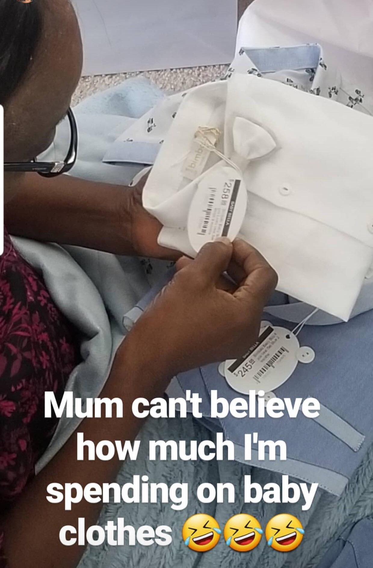 Taking to her Instagram story, she also shared photos of some of the designer clothes she’s already buying for her baby boy, to the surprise of her mum who can’t believe the extravagant cost of them.