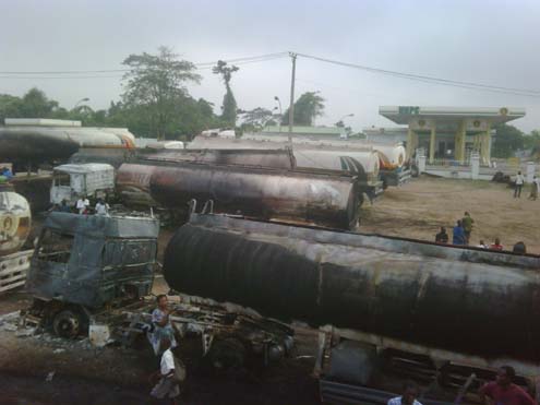 He said that a man trying to scoop fuel from the spillage was burnt to death, while the drivers of the three vehicles escaped unhurt.