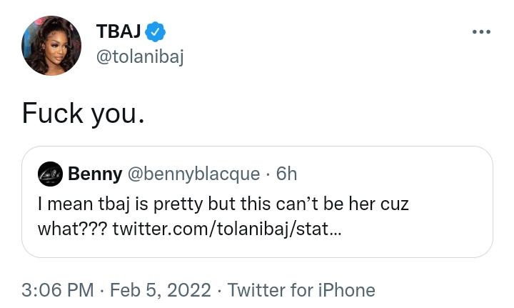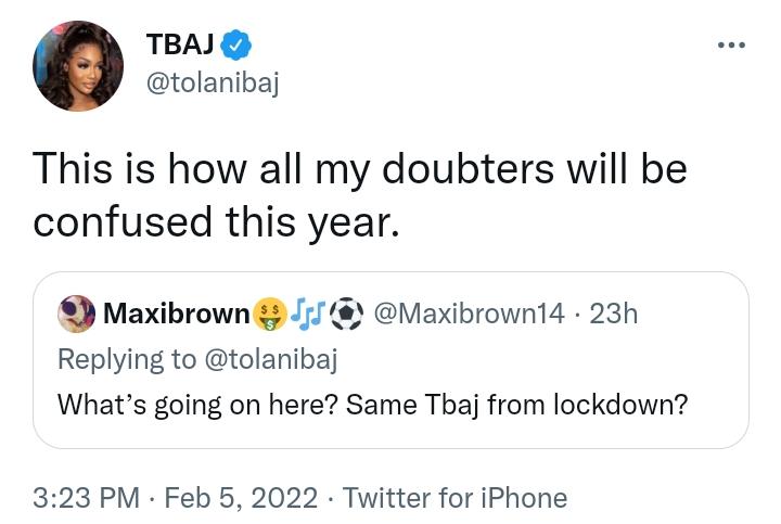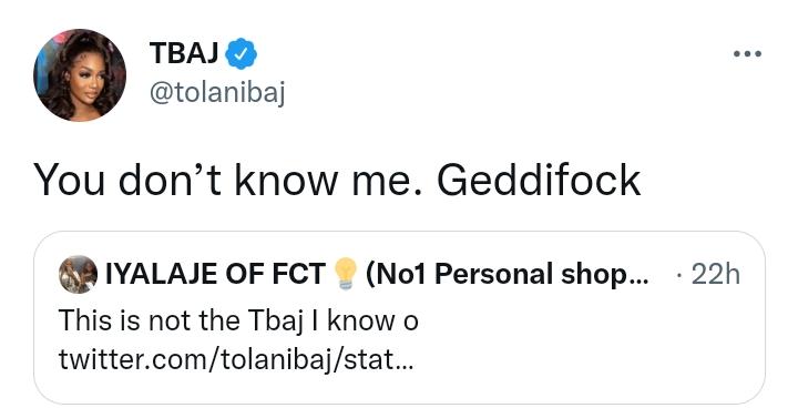 As expected, Tolanibaj took out time to respond to some of the people who left negative remarks on her post. She also slammed those who were pushing the narrative that she is not beautiful.