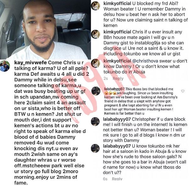 Christopher if you dare block me! I will finish you on the internet! Is Kemen not better than you? Woman beater! I will make sure I go to all the blogs I know and DM your story with Dammy.