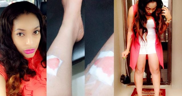 She, who’s the estranged wife of producer Tchidi Chikere and skin care expert, was through with church service on Sunday and was heading home in her high heel pumps when she suddenly plunged into a gutter as she was about to enter her car.