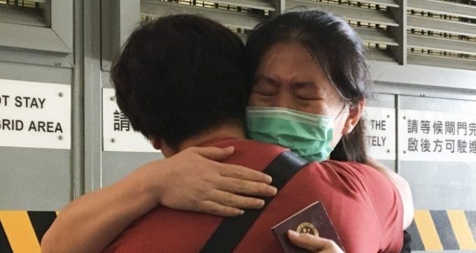 In these photos taken yesterday, Li Dandan pulled her mother in a tight embrace as soon as she emerged from a Hong Kong court’s cell holding unit, free at last from a drug trafficking case hanging over her head for three years.