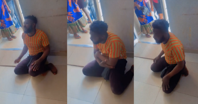 The video shared by @yallmeet_nurseamy showed a man on the floor of a hospital looking worse for wear. The man had been in a state of tension for 16 hours, from the time his wife went into labour, to when she finally gave birth.