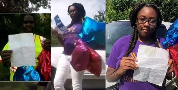“I wrote a note that said ‘God please help me get the rest of my stuff for college. Then I said ‘Amen, I love you God’ and I wrote my name and number” Curry told CNN. She tied the note to three helium balloons leftover from her grandmother’s birthday celebration and let them go.