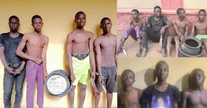 The suspects were apprehended on Saturday while they were burning the head of their victim, who is said to be a girlfriend to one of them, in a pot for a money ritual.