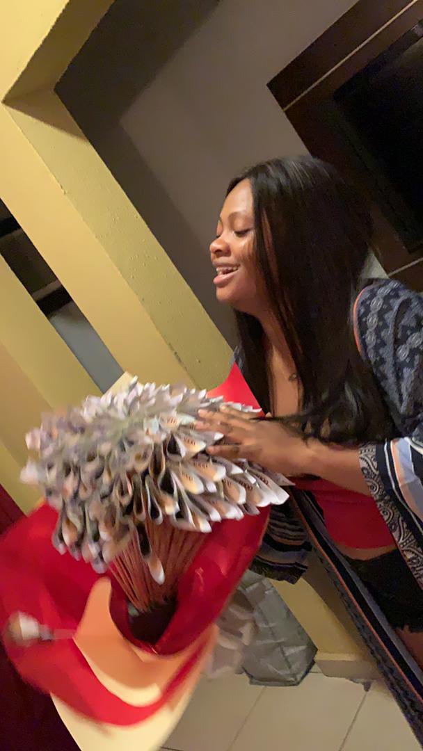 When she returned home, she was treated to a surprise package from Emmarose fans. The package included a money bouquet, picture frame, wine, customized flask bottle, chocolates, and other thoughtful gifts.