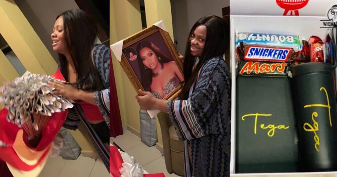 Fans of Big Brother Naija season 6 couple, Emmanuel and Liquorose, surprised Tega with some nice gifts on Tuesday, October 26.